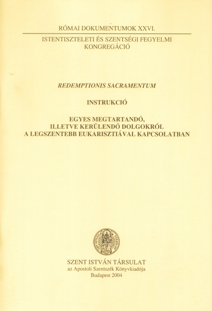 [265] Vö. Eucharisticum mysterium instrukció 26. p.; Christi Ecclesia direktórium 5, 25. pp.