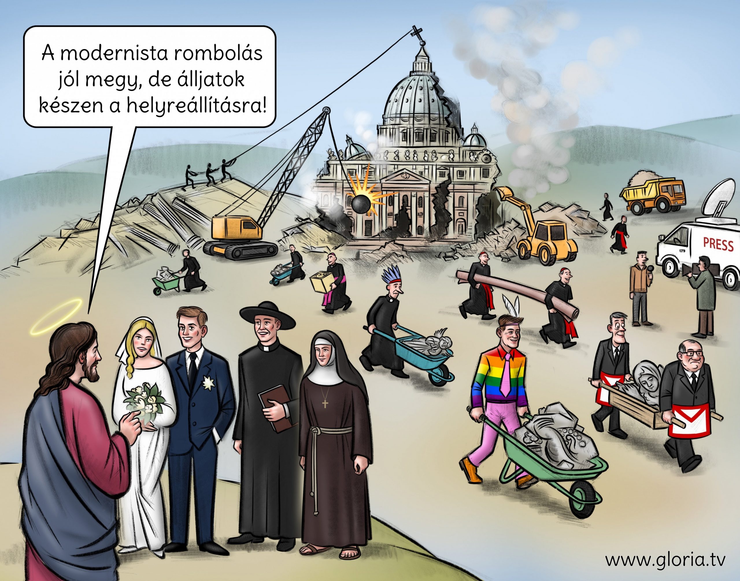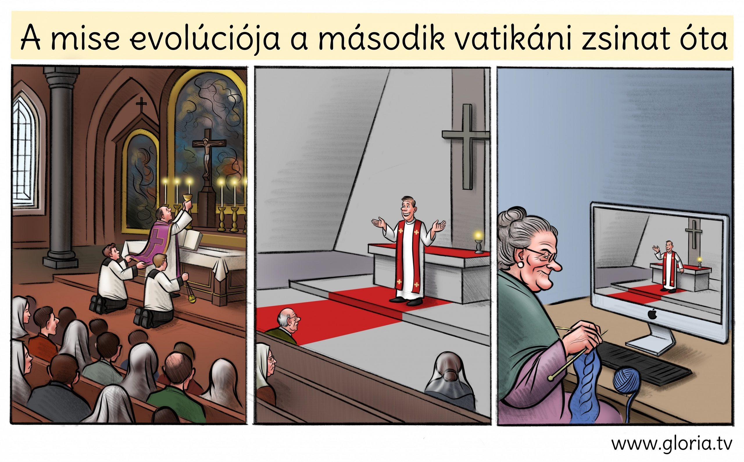 Azzal is egyet tudunk érteni, hogy megújulás nélkül – nem térvesztése lesz a római-katolikus Anyaszentegyháznak, hanem – olyan válság következik be, hogy közel lesz/van a katakomba liturgia bemutatásának a lehetősége. Ezen viszont csak és kizárólag a krisztusi tanításhoz és gyökerekhez való visszatérés segíthet, és nem a további protestantizálás. |